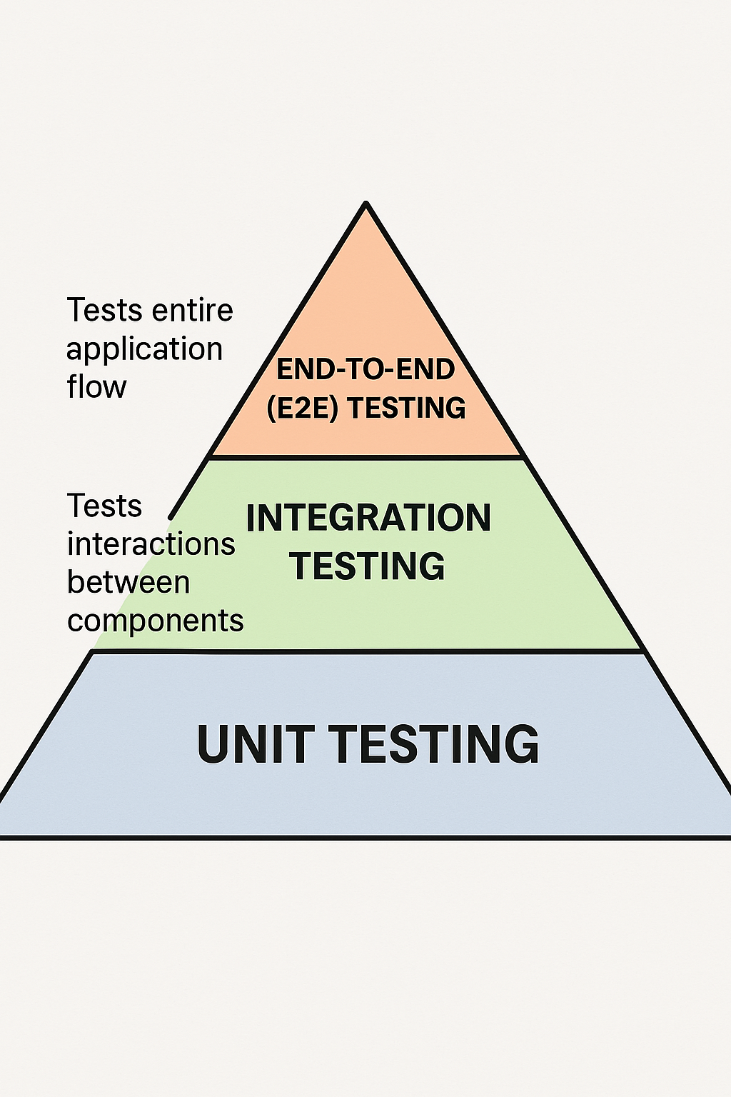 - Unit Tests: Form the base—fast, numerous, and cheap.